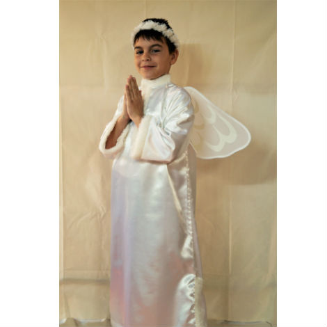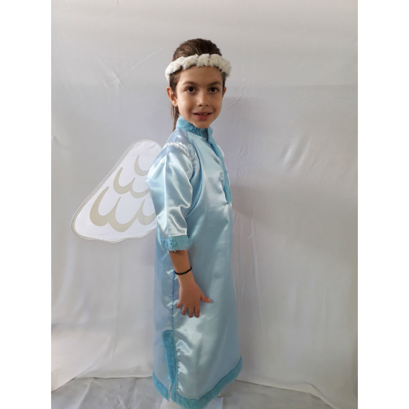 The angel costume consists of a tunic, wings and halo. The angel costume is available in gold, light blue and silver. The sizes of the angel costume are 2,4,6,8.