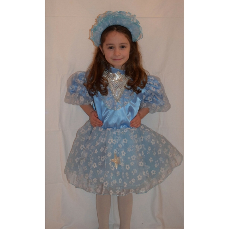 The light blue star costume consists of light blue dress and wreath. The sizes of the costume are 4, 6 and 8.